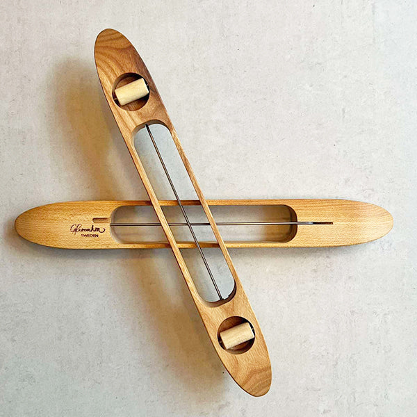 Stor og rummelig væveskytte fremstillet i holdbart fyrretræ. Velegnet til vævning med tykkere garner. Designet uden bund i spile huset for optimal funktionalitet.